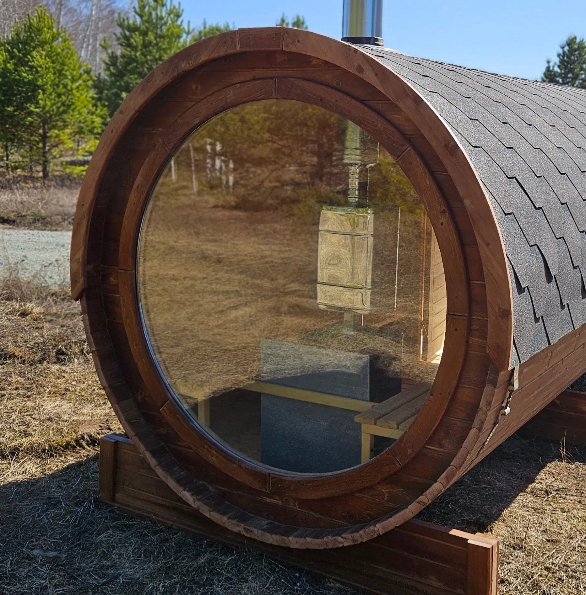 Заказывали вот такую баню-бочку для коммерческого использования! Тест банька прошла успешно! Нашим клиентам такое новшество по духу!))