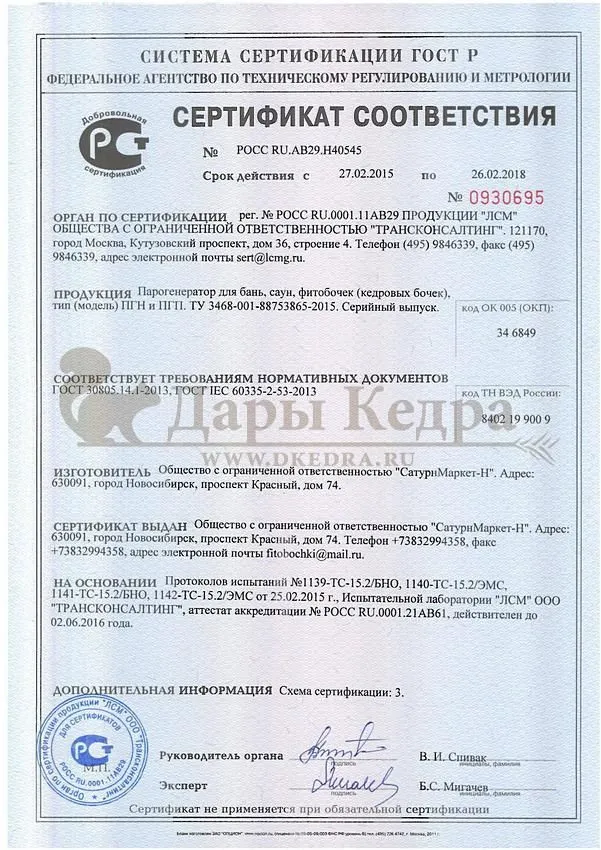 Парогенератор накопительного типа, с объемом бака 6,5 литров, отлично подойдёт для коммерческого и домашнего применения - в увеличенных кедровых бочках, душевых, для увлажнения бань и саун. Рассчитан на объем парной до 4 кубов.