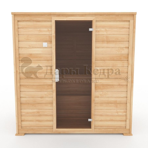 Это специально оборудованная готовая деревянная кабина для сухого и влажного парения. Электропечь нагревает пространство внутри и позволяет сбрызгивать камни водой, слегка увлажняя воздух. Такая процедура позволяет избежать перегрева. Сауна обшита снаружи и внутри кедровой вагонкой и имеет теплоизоляционный слой. Финская сауна с электропечью подойдет, как для домашнего использования, так и для коммерции. Доставляется в разборном виде щитами, собирается по инструкции с помощью шуруповёрта.