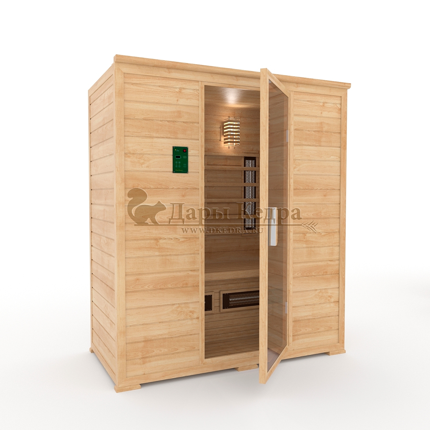 Инфракрасная сауна из кедра представляет собой кабинку с ик-нагревателями. Главное отличие такой кабины от финской парной или классической бани заключается в прогреве тела, а не воздуха. Внутренний прогрев тканей считается полезным и щадящим, за счет чего в инфракрасной кабине могут принимать лечебные процедуры даже дети и пожилые люди.